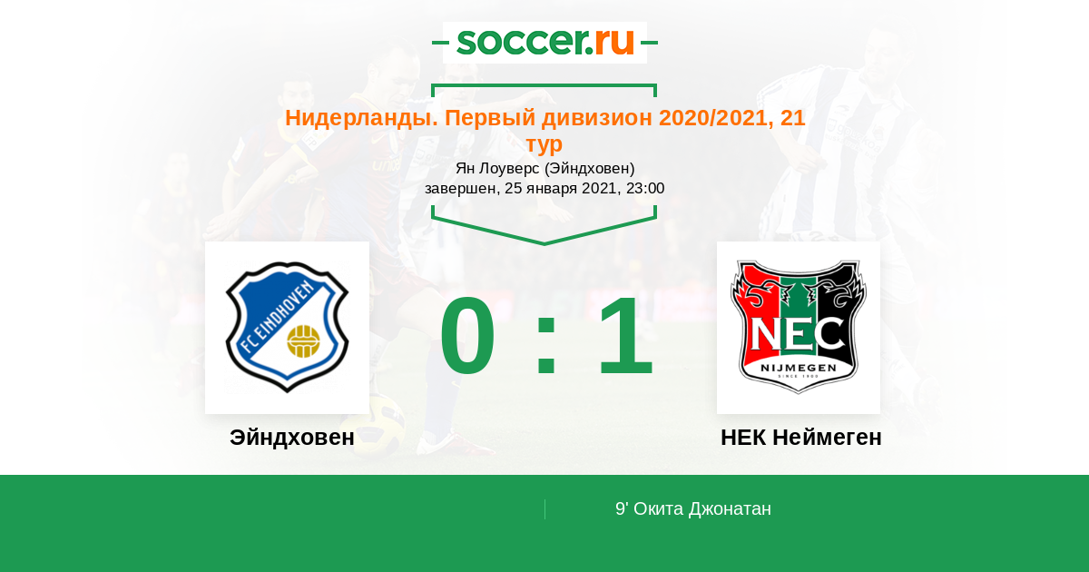 Протокол матча Эйндховен против НЕК Неймеген