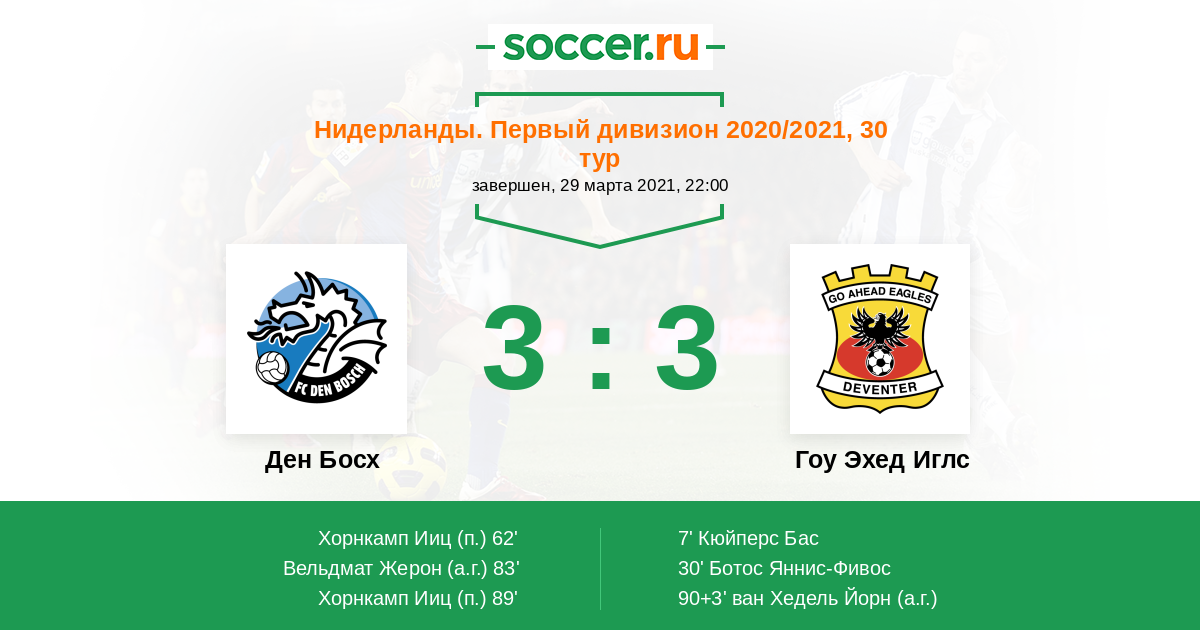 90+3' (3:3) Автогол ван Хедель Йорн (32)