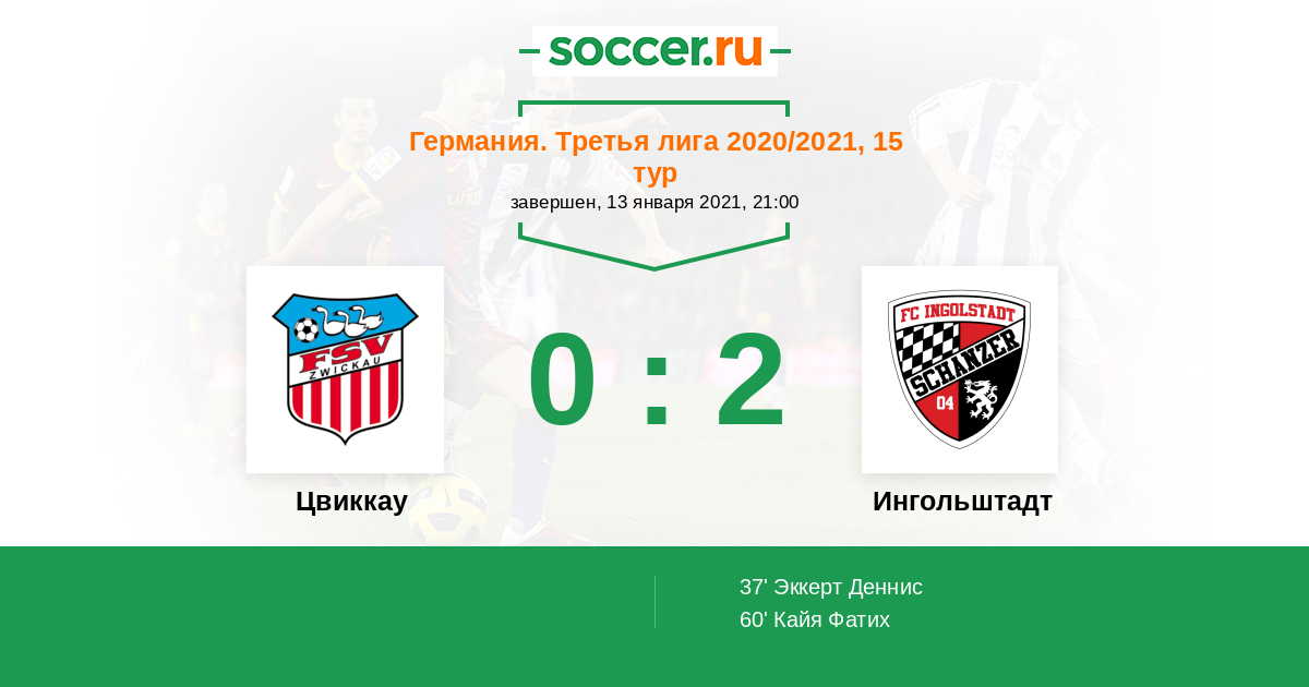 Протокол матча Цвиккау против Ингольштадт