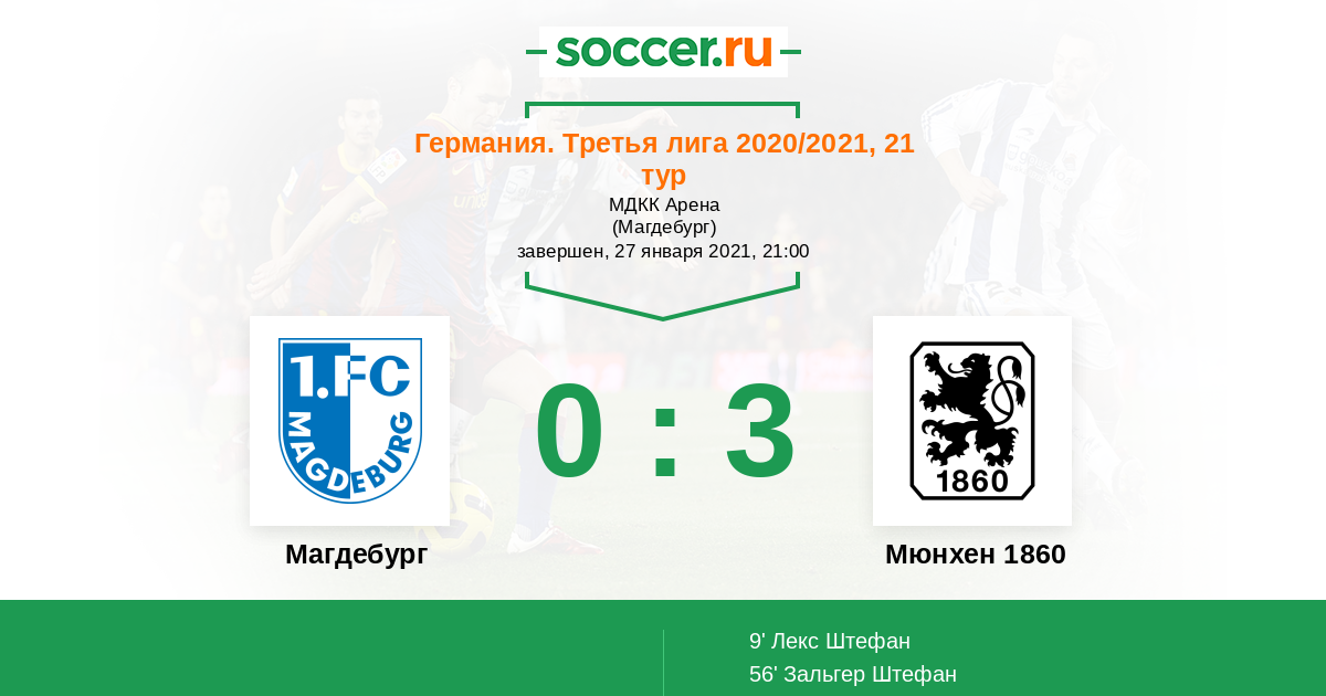 Протокол матча Магдебург против Мюнхен 1860