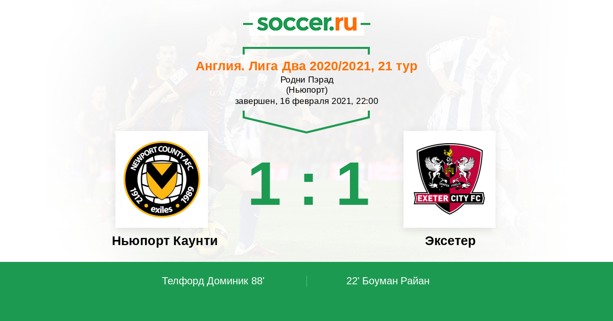 Протокол матча Ньюпорт Каунти против Эксетер