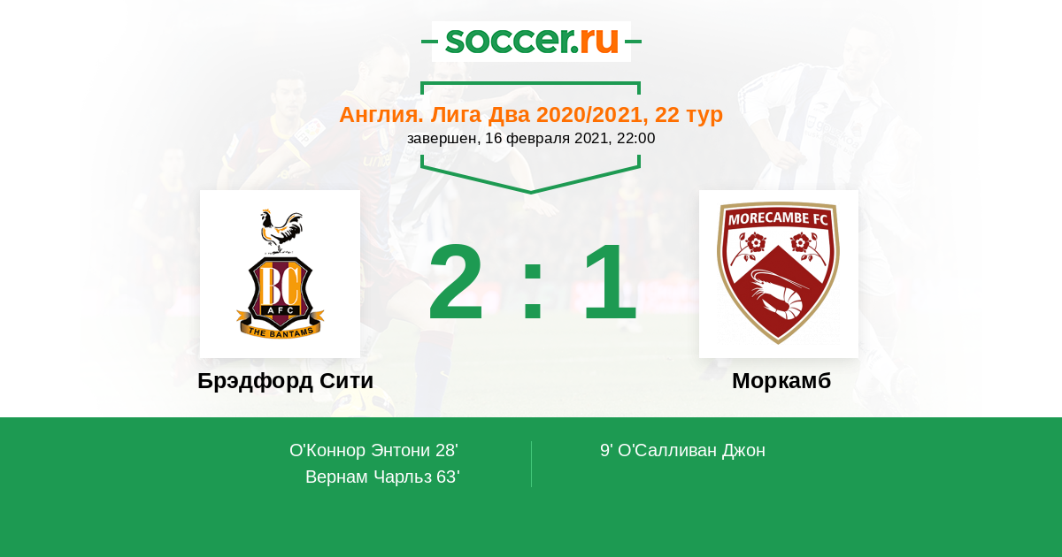 Протокол матча Брэдфорд Сити против Моркамб