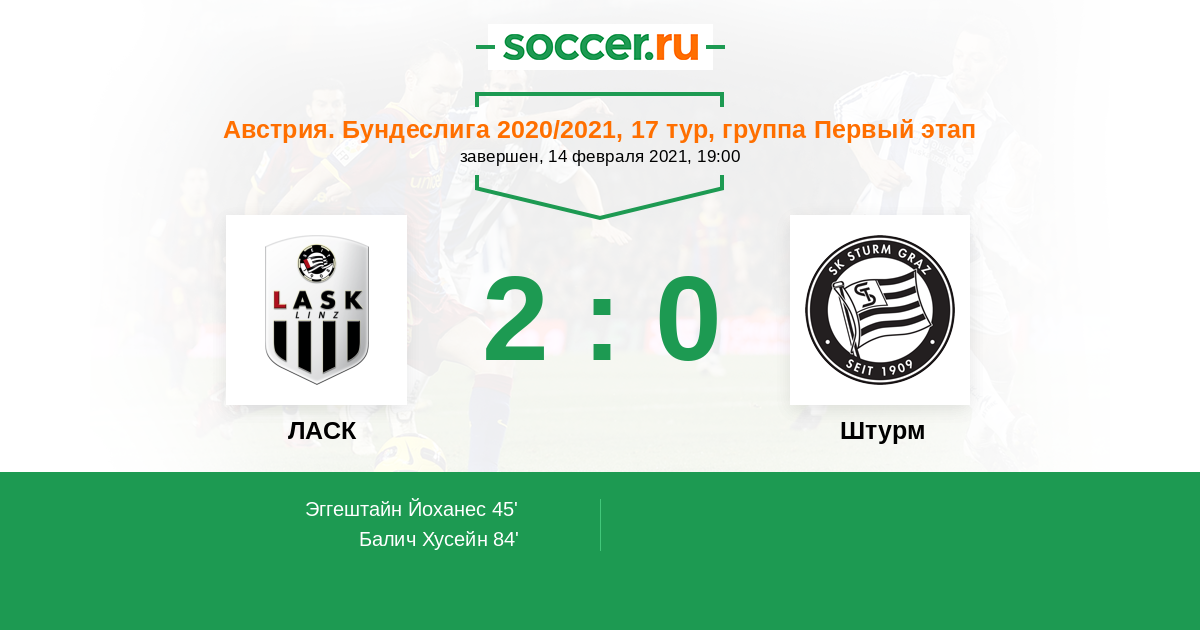 45' (1:0) Эггештайн Йоханес (13) (Ранфтль Рейнхолд (26))