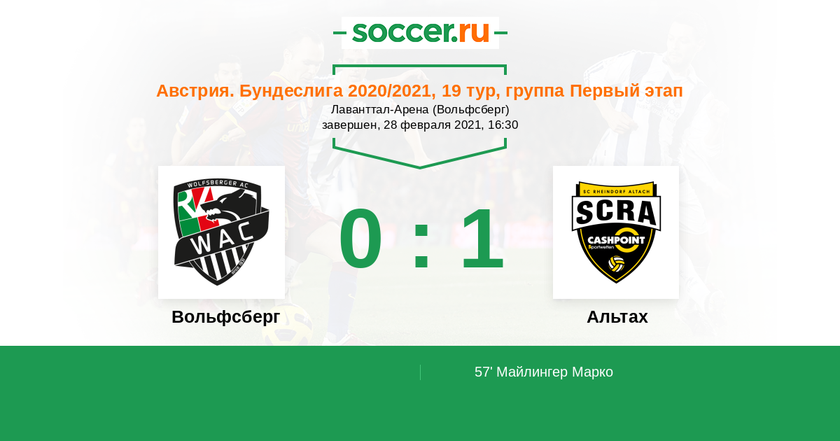 57' (0:1) Майлингер Марко (11) (Шрайнер Эмануэль (16))