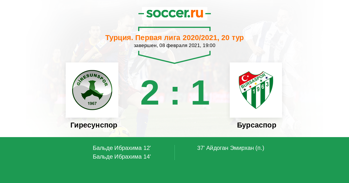 Протокол матча Гиресунспор против Бурсаспор