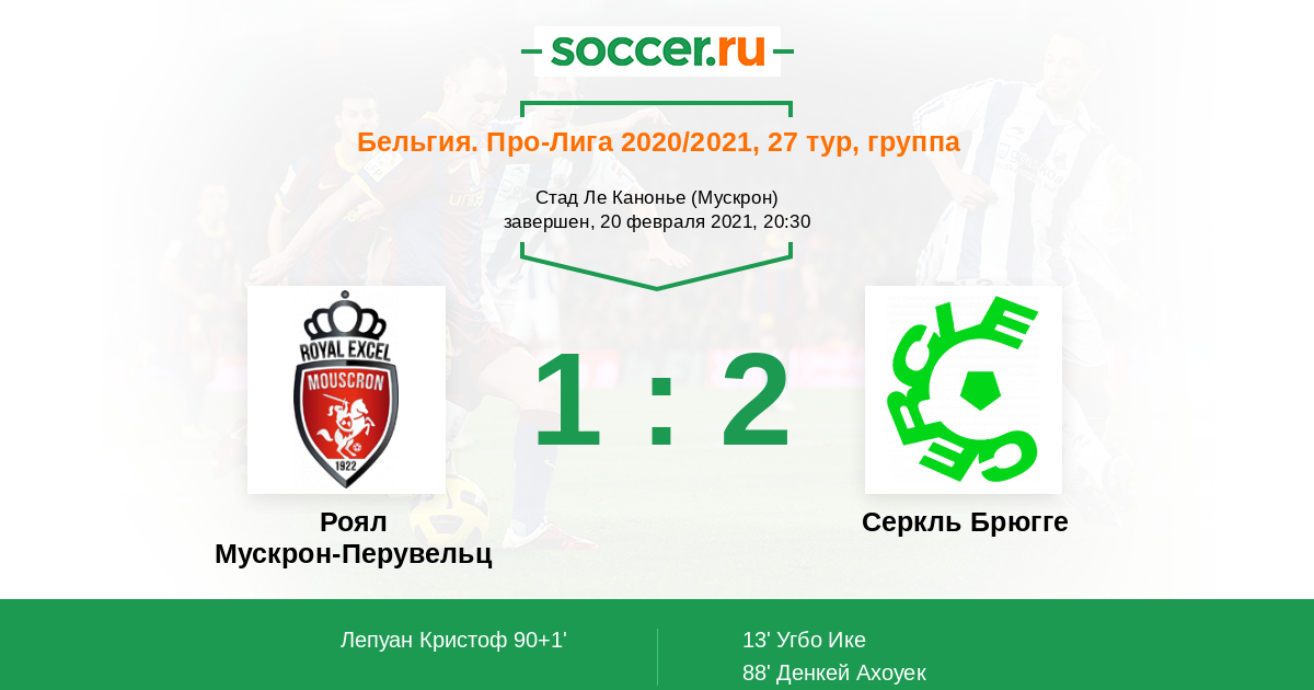 Протокол матча Роял Мускрон-Перувельц против Серкль Брюгге
