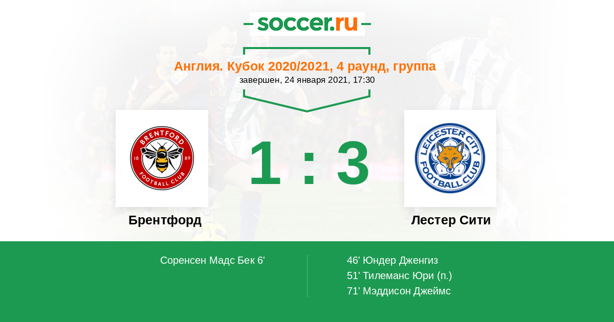 Протокол матча Брентфорд против Лестер Сити