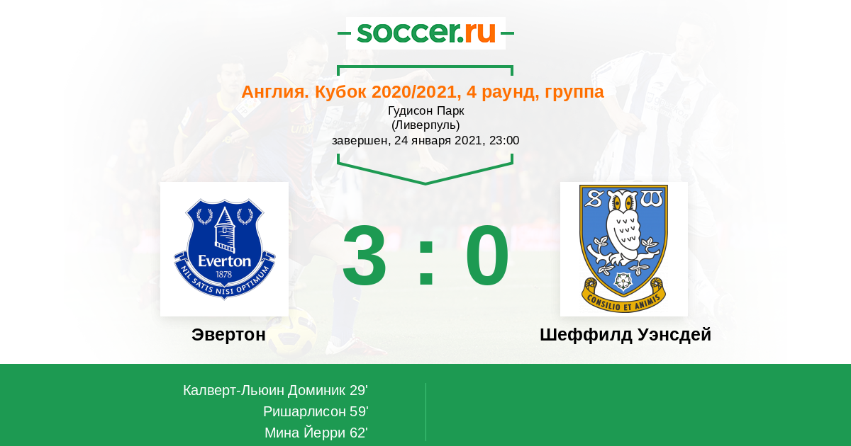 Протокол матча Эвертон против Шеффилд Уэнсдей