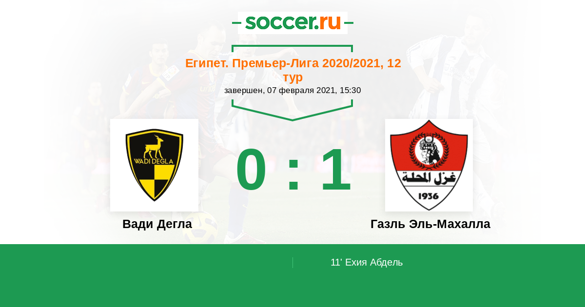 Протокол матча Вади Дегла против Газль Эль-Махалла