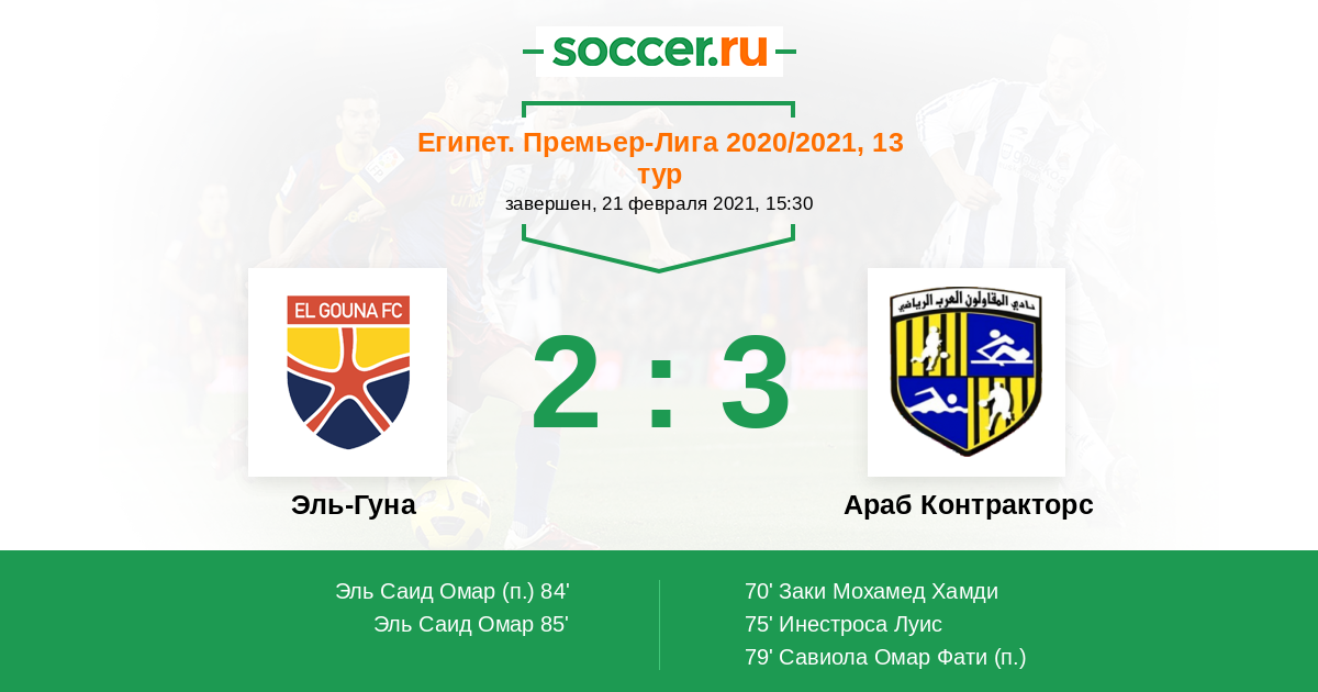 Протокол матча Эль-Гуна против Араб Контракторс