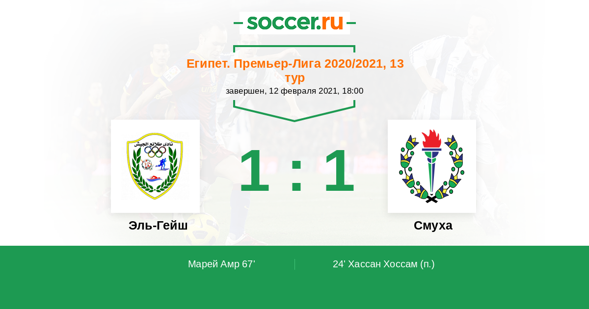67' (1:1) Марей Амр (13) (Мохареб Ислам (12))