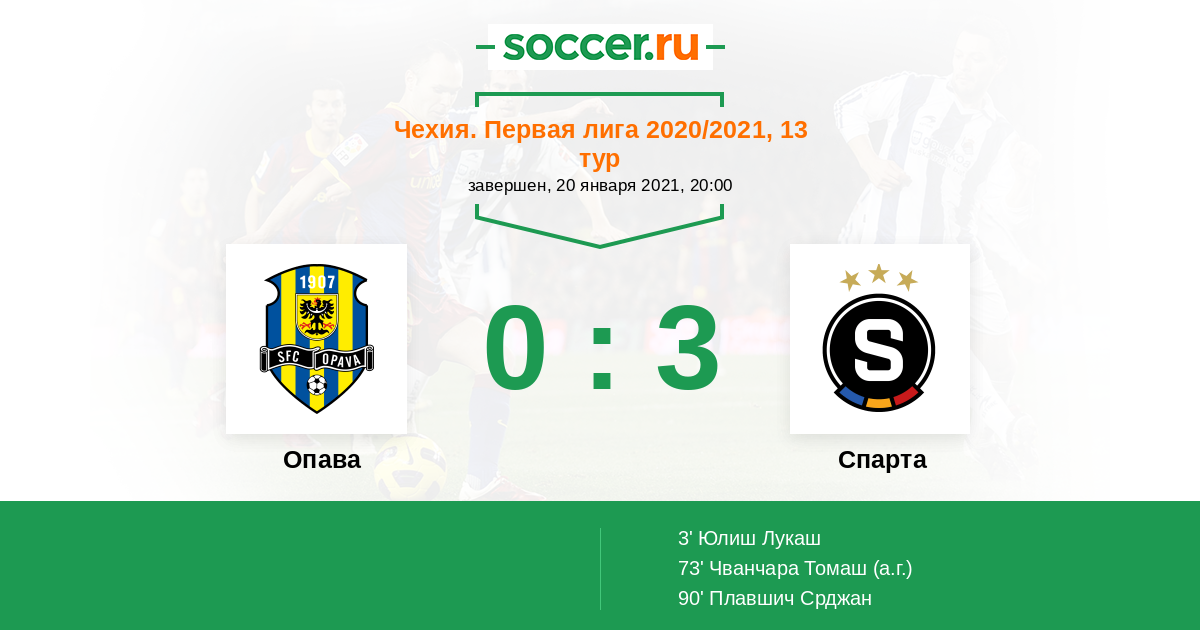 Протокол матча Опава против Спарта