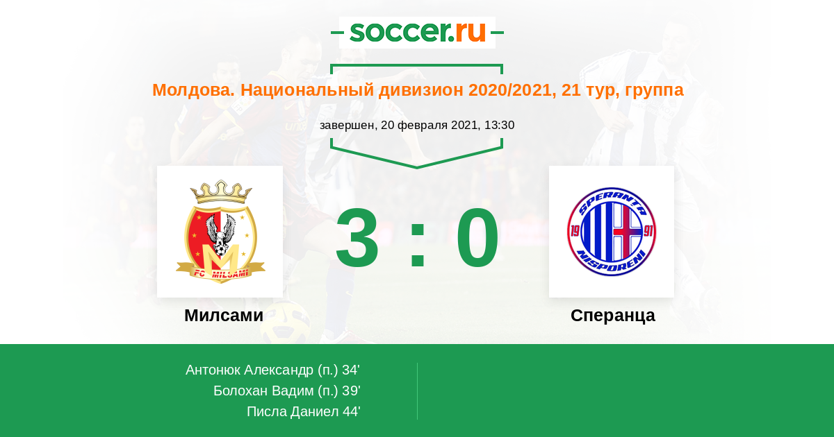 Протокол матча Милсами против Сперанца