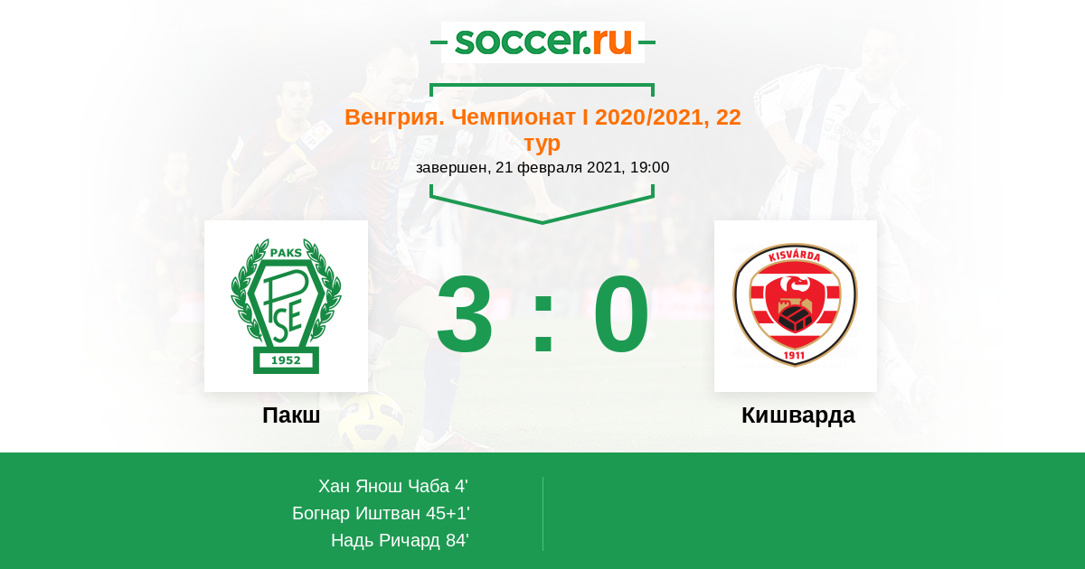 Протокол матча Пакш против Кишварда