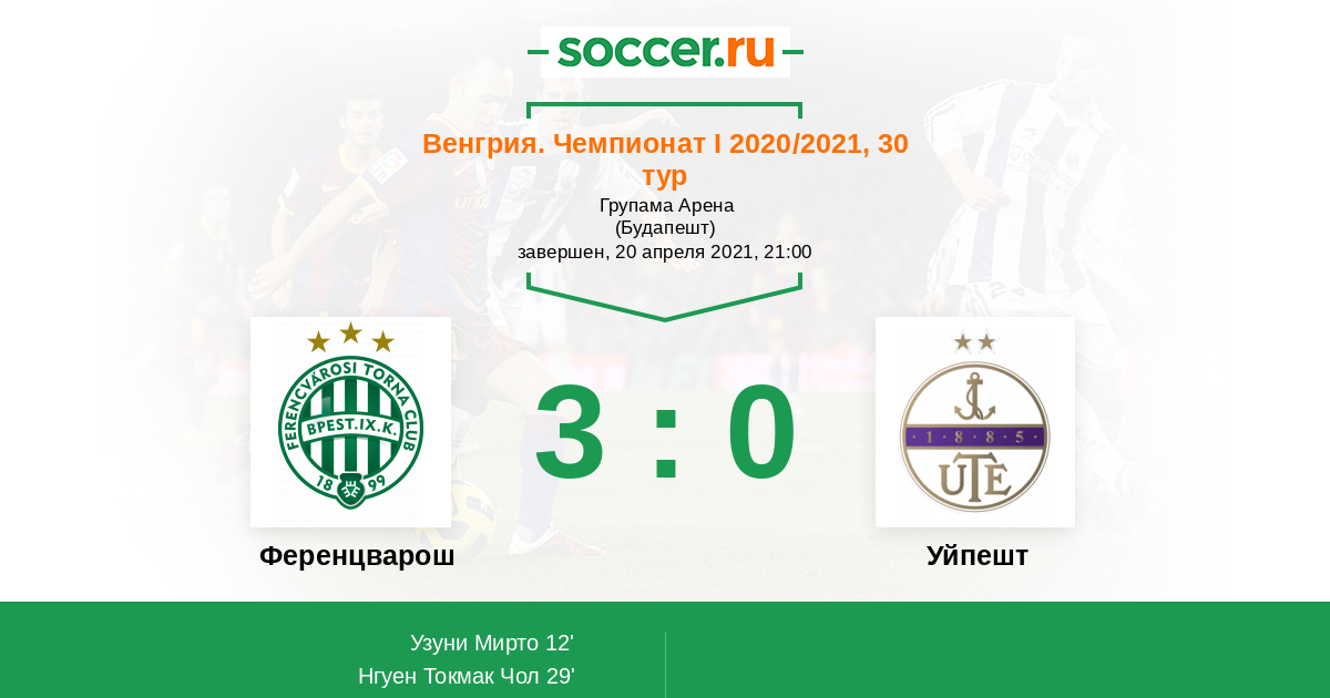 Протокол матча Ференцварош против Уйпешт
