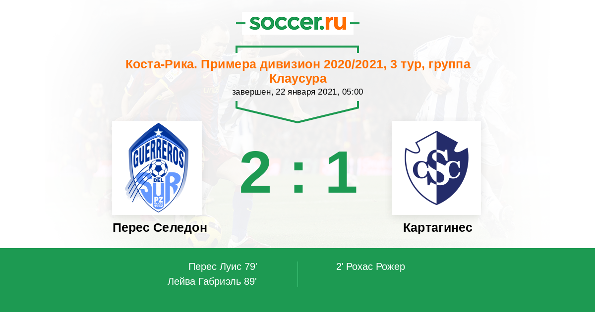 Протокол матча Зеледон против Картахинес