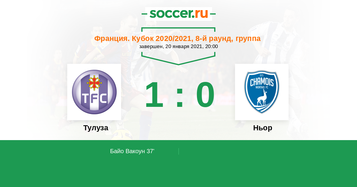 Протокол матча Тулуза против Ньор