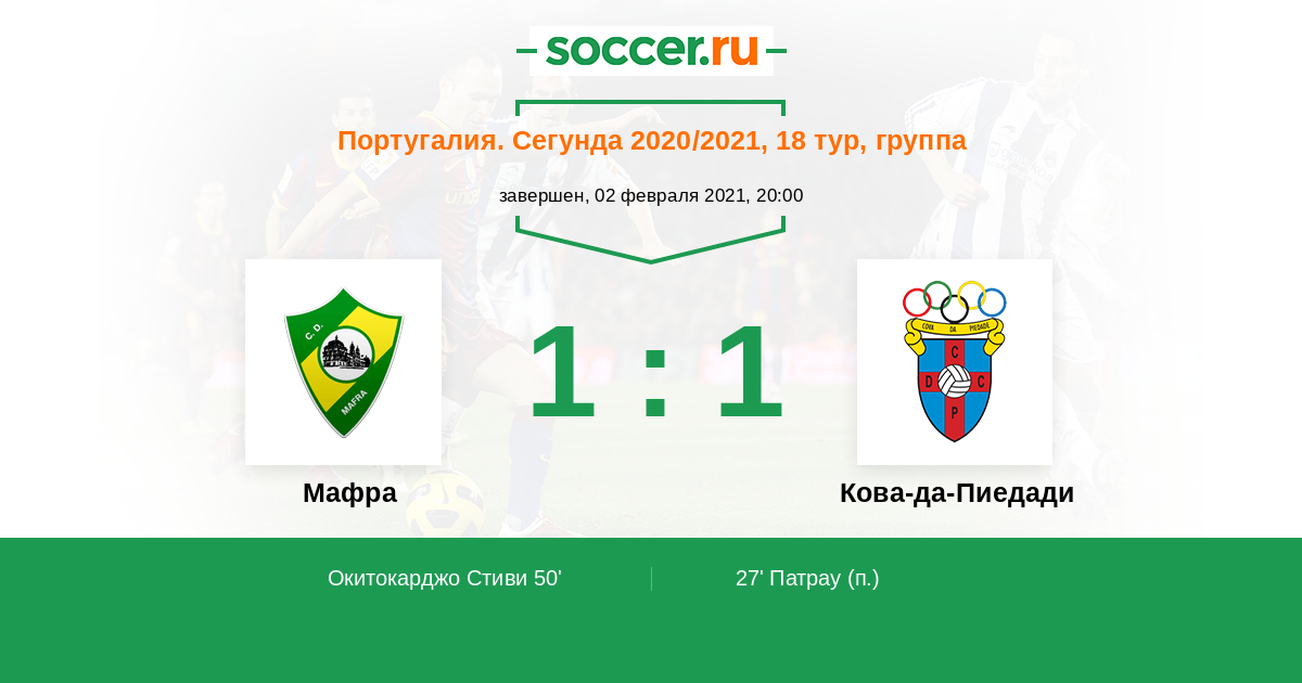Протокол матча Мафра против Кова-да-Пиедади
