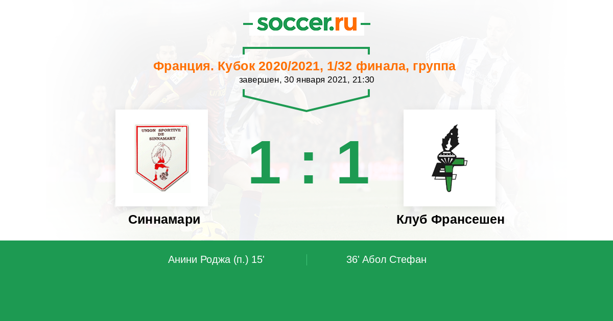 Протокол матча Синнамари против Клуб Франсешен