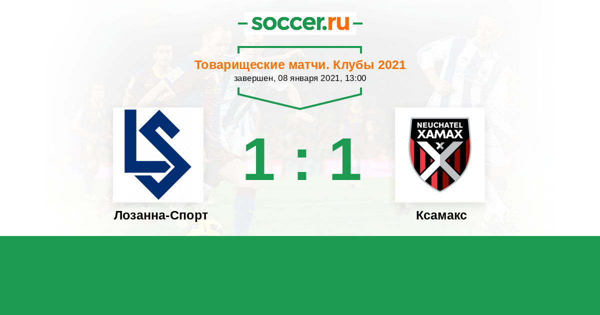 Товарищеские матчи. Клубы 11.01.2019 Ксамакс Логотип футбольный клуб Ксамакс (Невшатель) 0:3 Логотип футбольный клуб Лозанна-Спорт Лозанна-Спорт