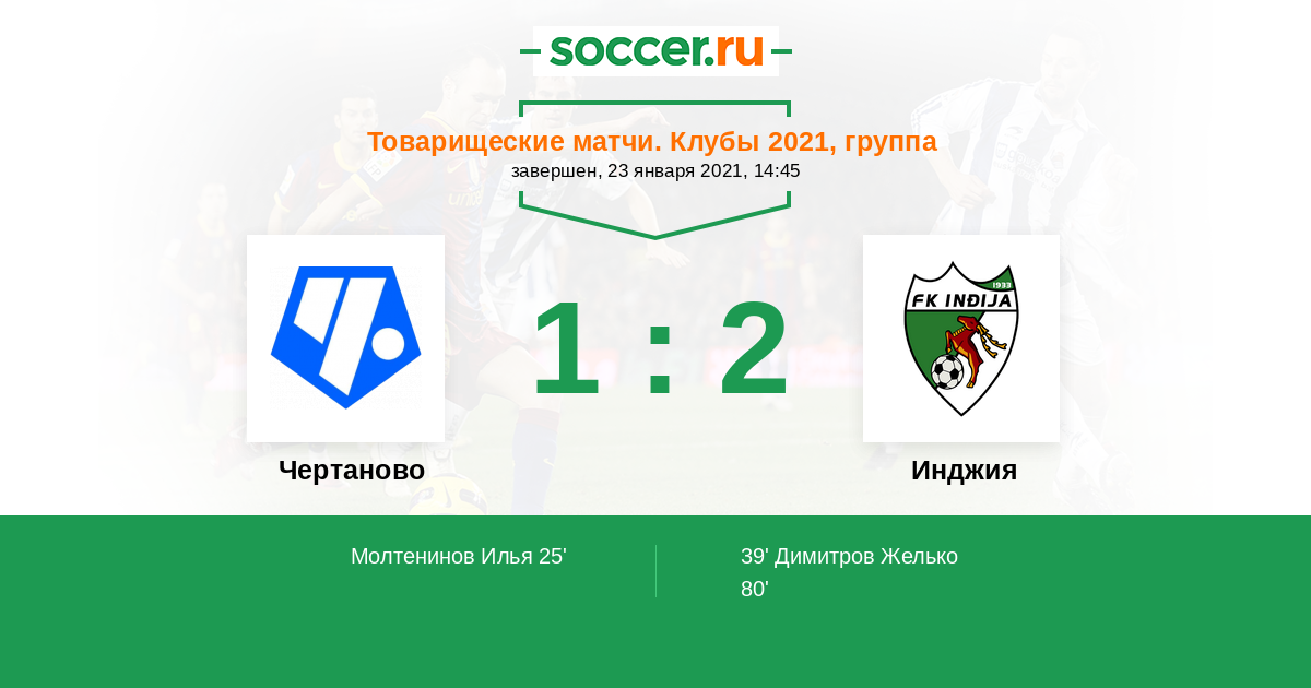 Протокол матча Чертаново против Инджия