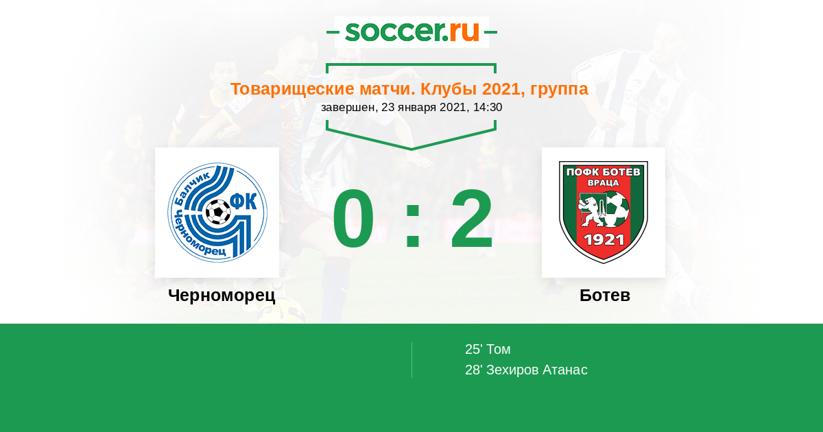 Протокол матча Черноморец против Ботев