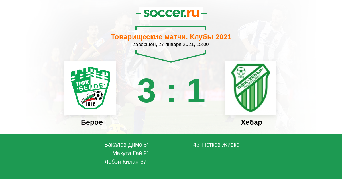 Протокол матча Берое против Хебар