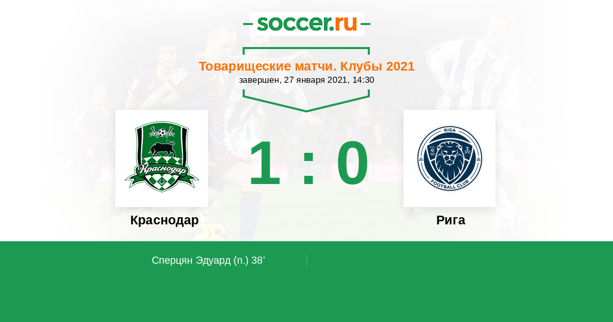 Протокол матча Краснодар против Рига