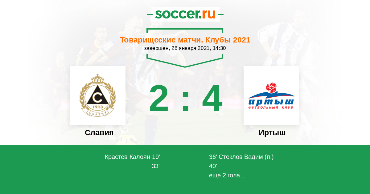 Протокол матча Славия против Иртыш