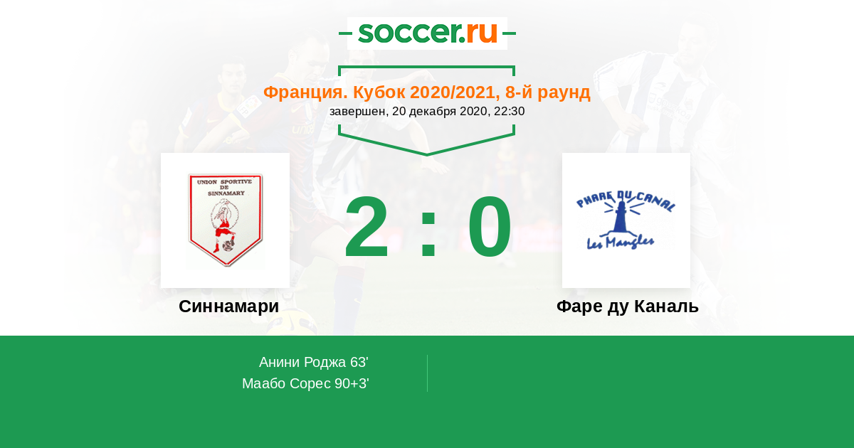 Протокол матча Синнамари против Фаре ду Каналь