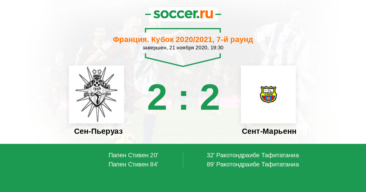 Протокол матча Сен-Пьеруаз против Сент-Марьенн