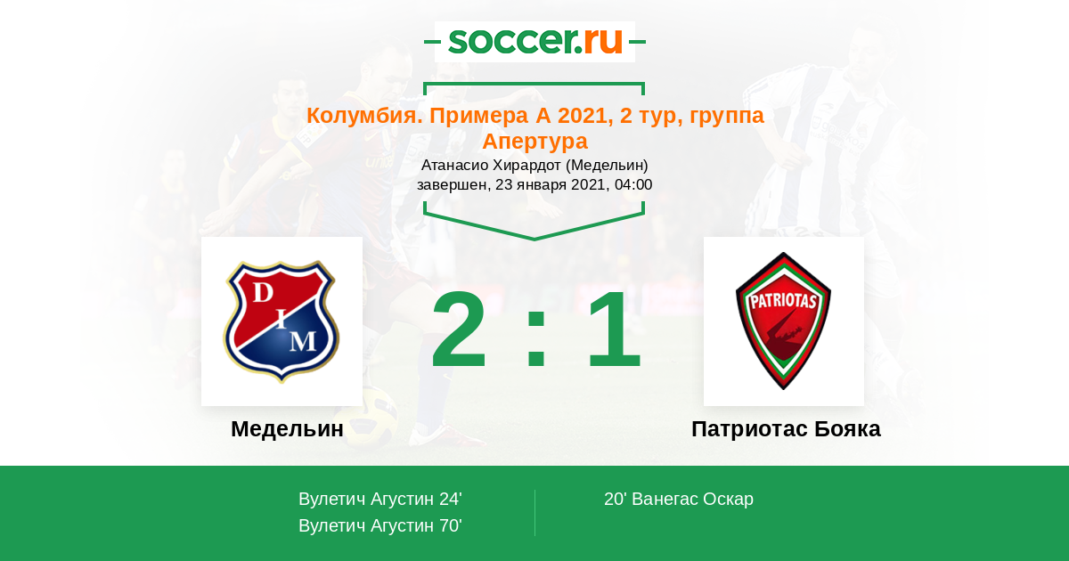 Протокол матча Медельин против Патриотас Бояка