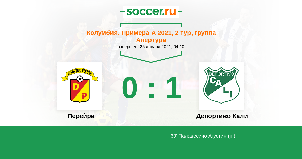 Протокол матча Перейра против Депортиво Кали
