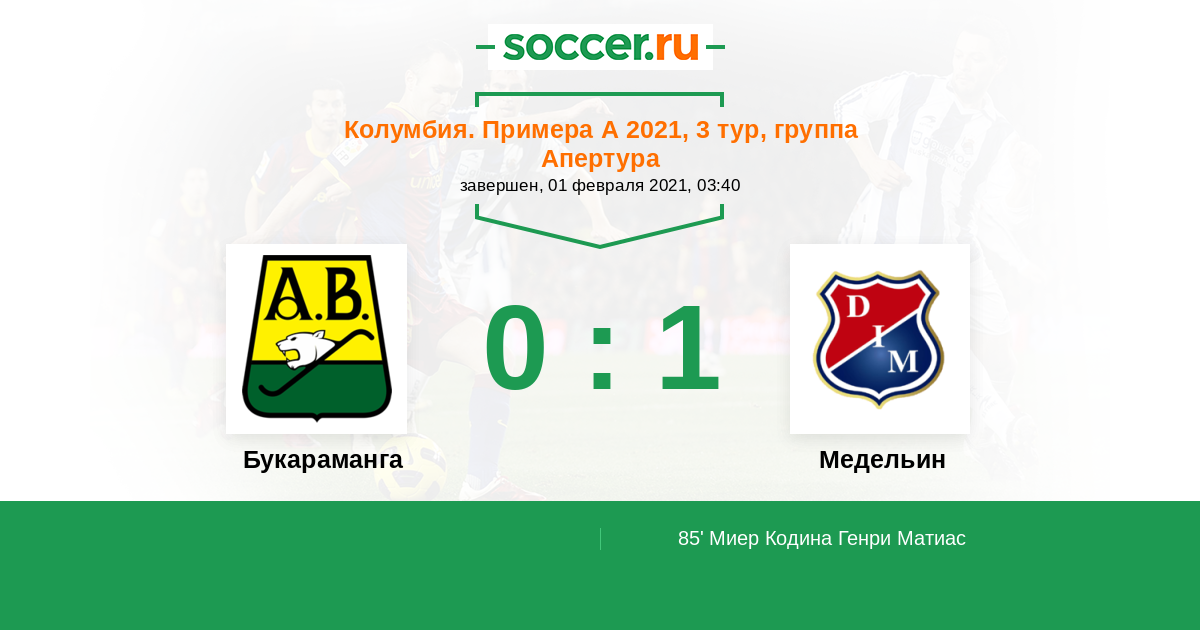 Протокол матча Букараманга против Медельин