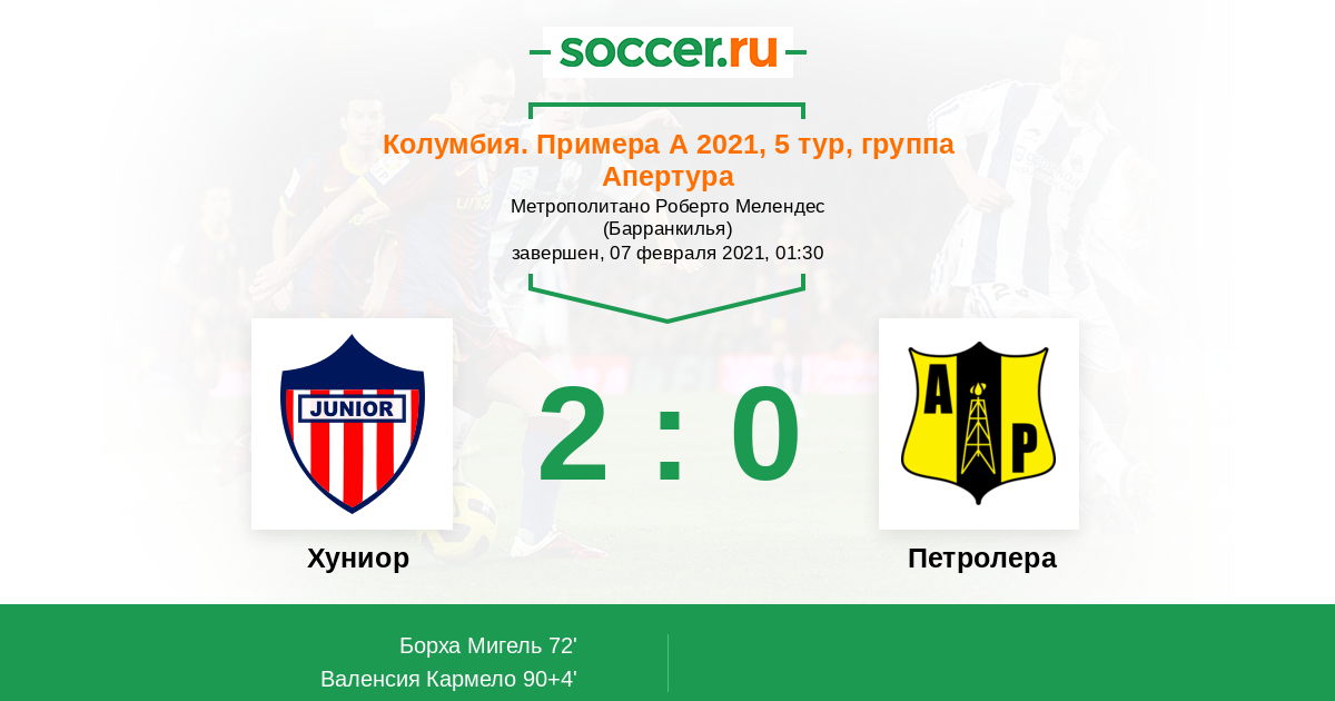 72' (1:0) Борха Мигель (9) (Гутьеррес Теофилио (29))