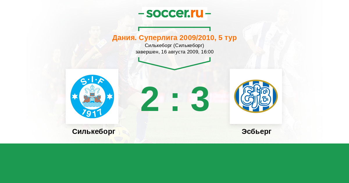 Дания. Суперлига 28.08.2010 Эсбьерг Логотип футбольный клуб Эсбьерг 2:1 Логотип футбольный клуб Силькеборг Силькеборг