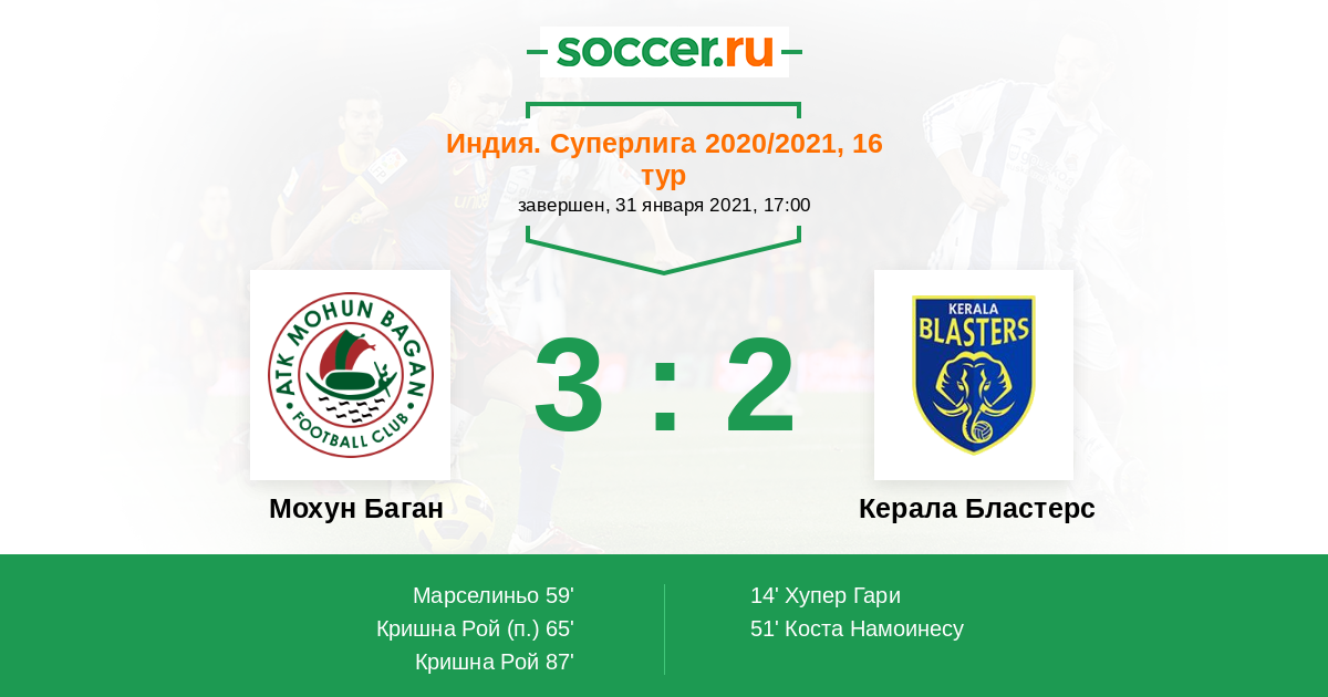 Протокол матча Мохун Баган против Керала Бластерс