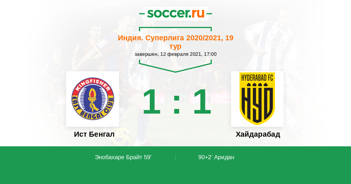 Протокол матча Ист Бенгал против Хайдарабад