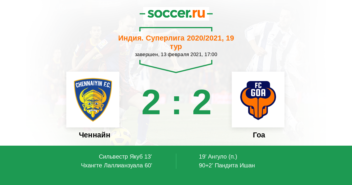 Гол90+2' (2:2) Пандита Ишан (26) (Ногэра Альберто (5))