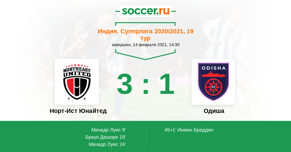 Протокол матча Норт-Ист Юнайтед против Одиша