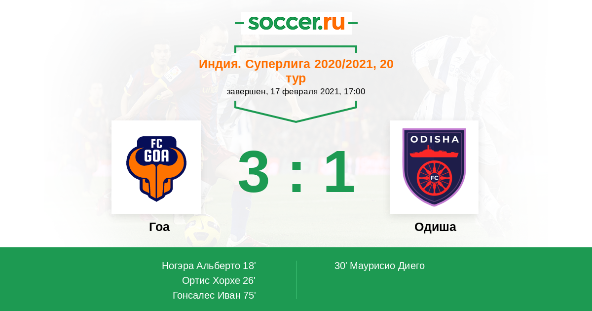 Протокол матча Гоа против Одиша