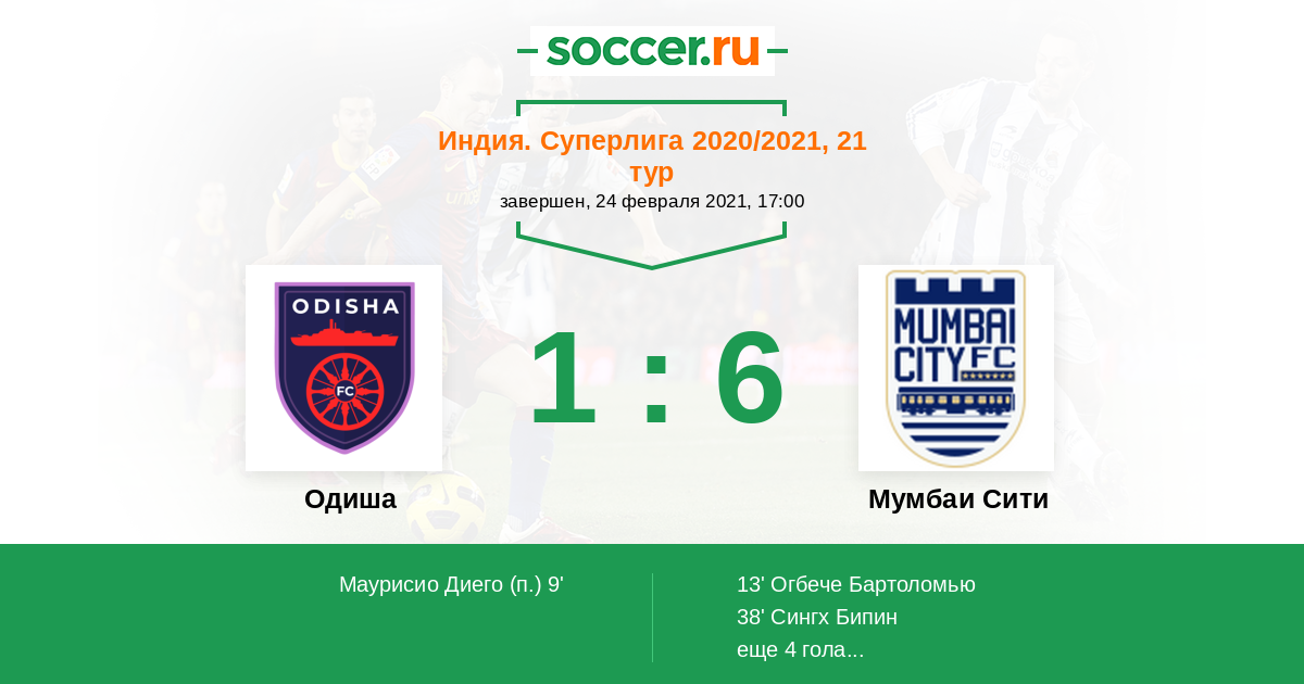 Протокол матча Одиша против Мумбаи Сити