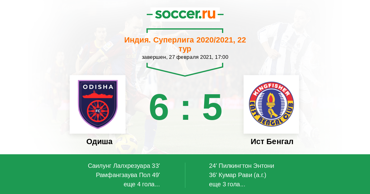 Протокол матча Одиша против Ист Бенгал
