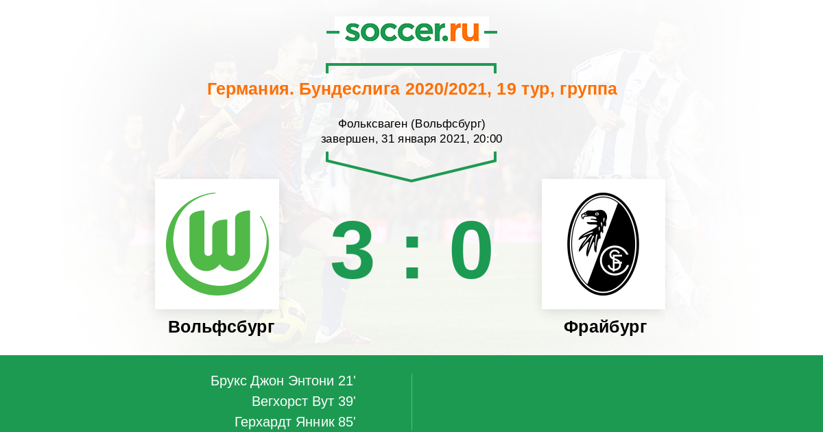 Протокол матча Вольфсбург против Фрайбург