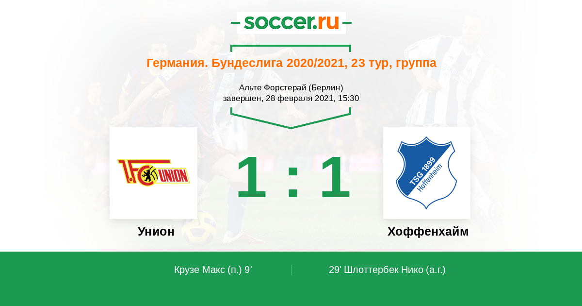 Протокол матча Унион против Хоффенхайм
