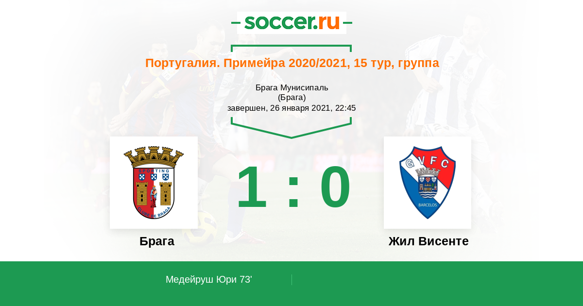 Протокол матча Брага против Жил Висенте