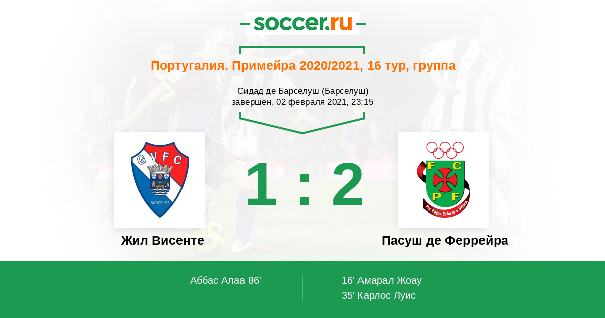 Протокол матча Жил Висенте против Пасуш де Феррейра