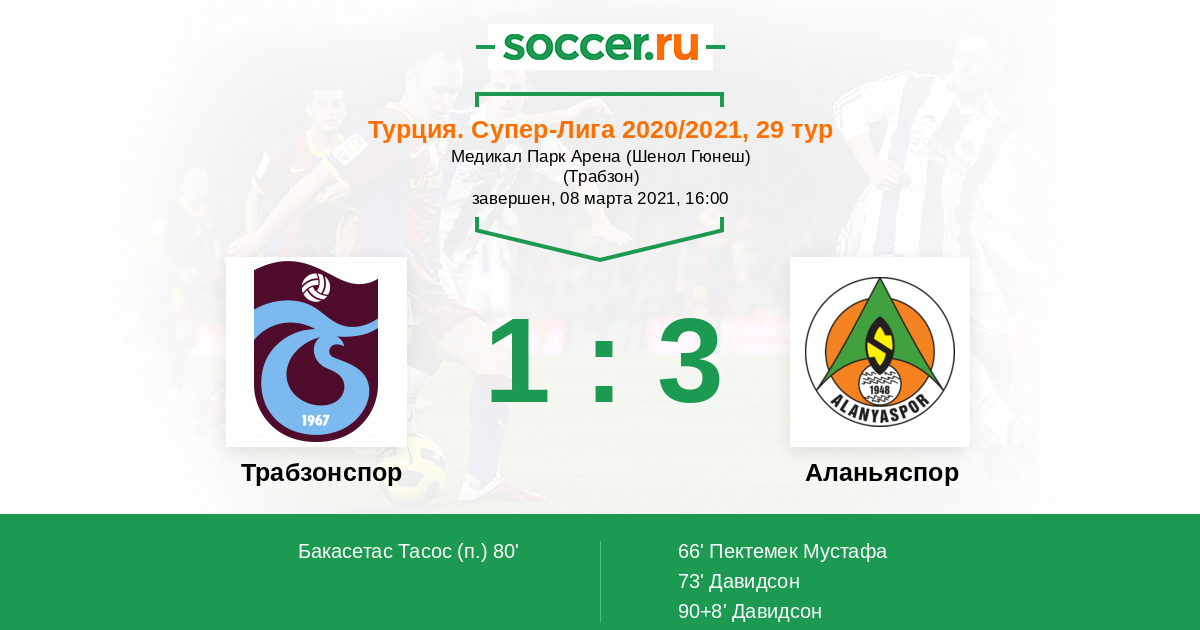 Протокол матча Трабзонспор против Аланьяспор