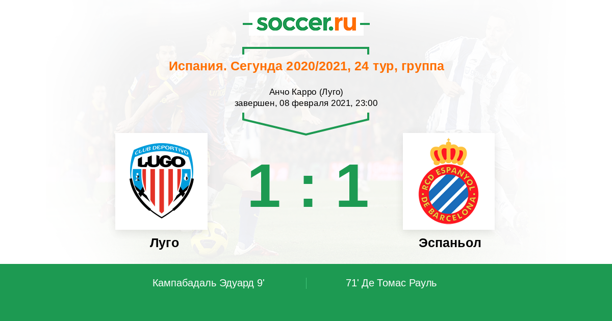 71' (1:1) Де Томас Рауль (11) (Хави Пуадо (9))