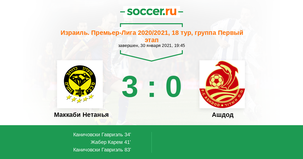 Протокол матча Маккаби Нетанья против Ашдод